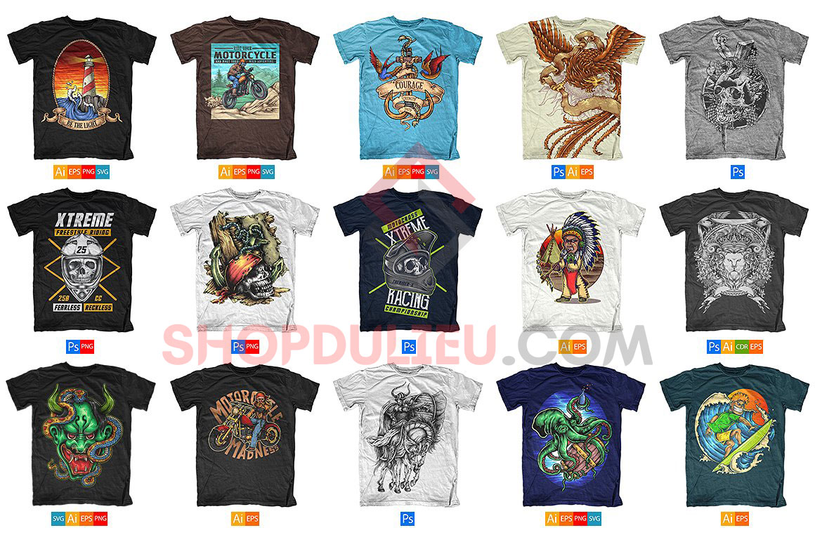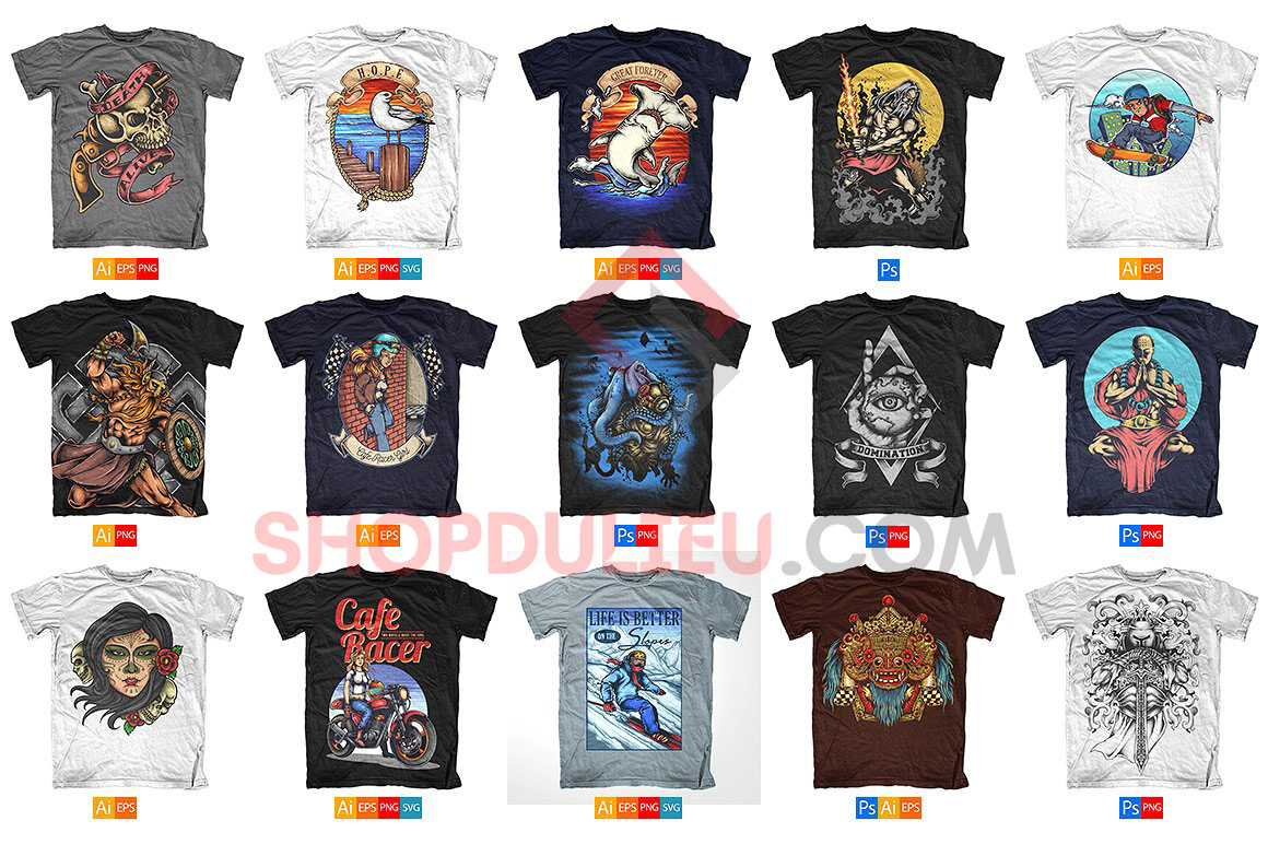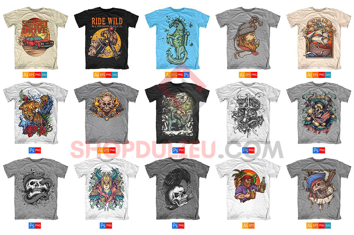 10.000+ mẫu thiết kế T-Shirts được thiết kế từ các định dạng AI – PNG – PSD – EPS với 25+ thư mục chủ đề khác nhau.